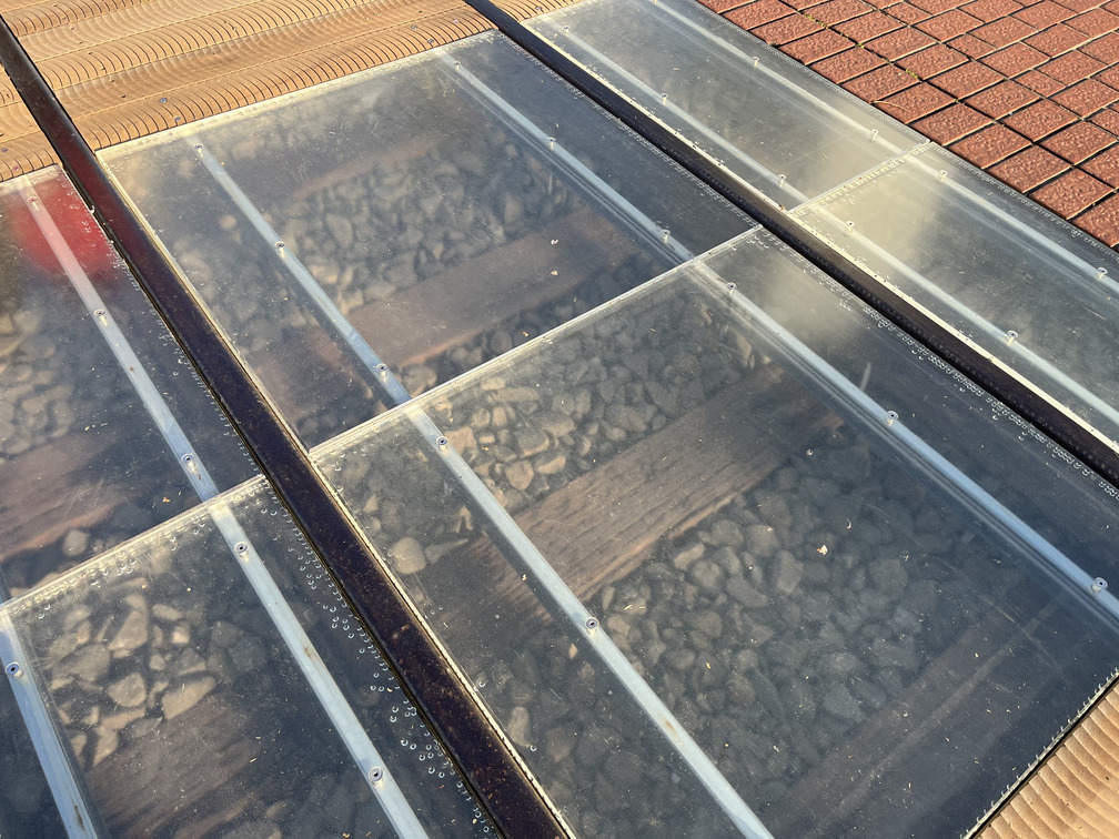 また一部にレール遺構を見ていただくための透明な床を作りました。