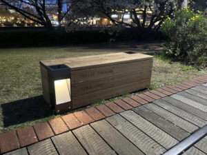 リサイクル材ベンチのため、板の長さは1mほどしか取れません。